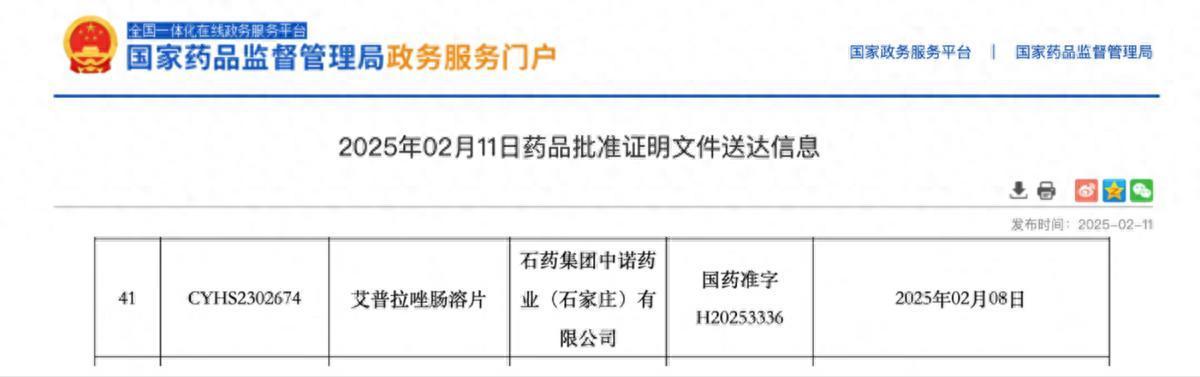 (人民日报健康客户端 记者 孔天骄)根据国家药监局网站2月11日发布,石药集团中诺药业(石家庄)有限公司申报的艾普拉唑肠溶片获批上市。艾普拉唑肠溶片是由丽珠制药研发的国产1.1类新药,于2007年12月在国内获批上市,此次,石药集团申报的艾普拉唑肠溶片获批上市,为国内首仿,打破丽珠集团独占市场近20年的局面。 ![]() 该药物是由韩国一洋株式会社在2001年研制成功,国内丽珠集团于2002年从该公司引进的化合物技术并研发申报,商品名为壹丽安,2007年在全球首次上市,是国内独家产品。艾普拉唑肠溶片属于不可逆型质子泵抑制剂,临床上主要用于胃酸分泌过多的消化系统疾病,可以抑制胃酸分泌,适用于十二指肠溃疡、反流性食管炎等。 消化性溃疡是一种常见的慢性消化系统疾病,治疗药物种类包括抑制胃酸分泌药(如质子泵抑制剂和H2受体拮抗剂)、抗酸药、胃黏膜保护剂以及中成药等。2月12日,航空总医院内分泌科主任方红娟在接受人民日报健康客户端记者采访时表示,其中,质子泵抑制剂因其强效的抑酸作用,目前已成为治疗胃酸相关性疾病的首选药物,广泛应用于消化性溃疡、胃食管反流病、卓-艾二氏综合症、幽门螺杆菌感染的根除治疗等与胃酸分泌相关的疾病。 质子泵抑制剂一直以来主导着抑酸药物市场,由于用药人群庞大,国内药企纷纷布局。艾普拉唑肠溶片还有石家庄科仁医药、北京福元医药、重庆圣华曦药业3家药企提交了仿制申请。 而随着首仿药物的问世,患者在选择用药时有了更多的选择。方红娟提醒,长期使用质子泵抑制剂时需要关注其潜在副作用,如可能影响钙、镁、维生素B12等矿物质和维生素的吸收,进而增加骨质疏松或其他电解质紊乱的风险,因此应在医生指导下合理使用。 |